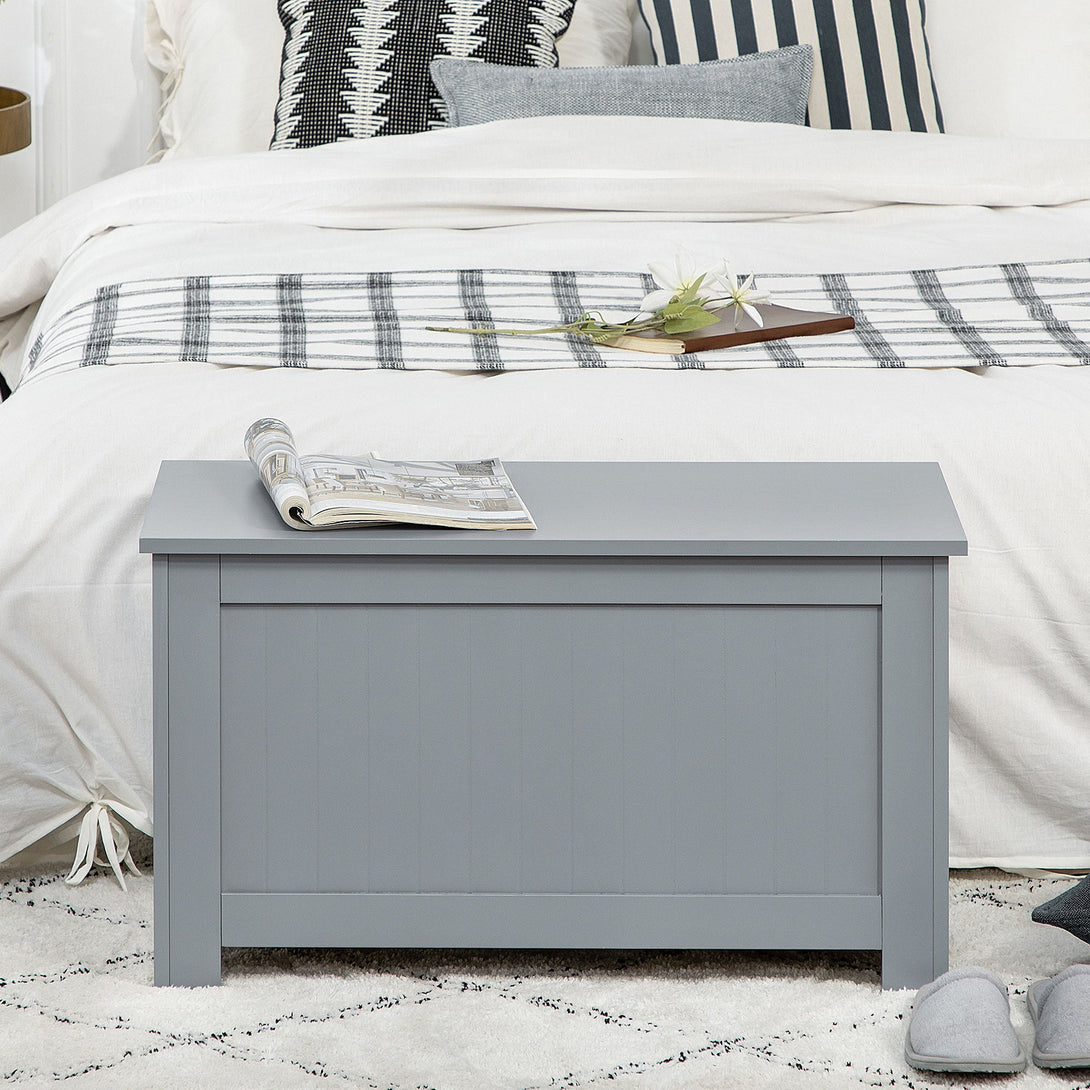 Deep and wide, this spacious chest from HOMCOM is the perfect piece for keeping your home tidy where needed. Made of particleboard, it's stable and easy to maintain and it features safety hinges so fingers don't get caught when opening and closing the lid. There are two handles so it can be carried with ease. With its simple shape and clean colour, this versatile piece will welcome itself in all bedrooms, hallways and playrooms galore.
