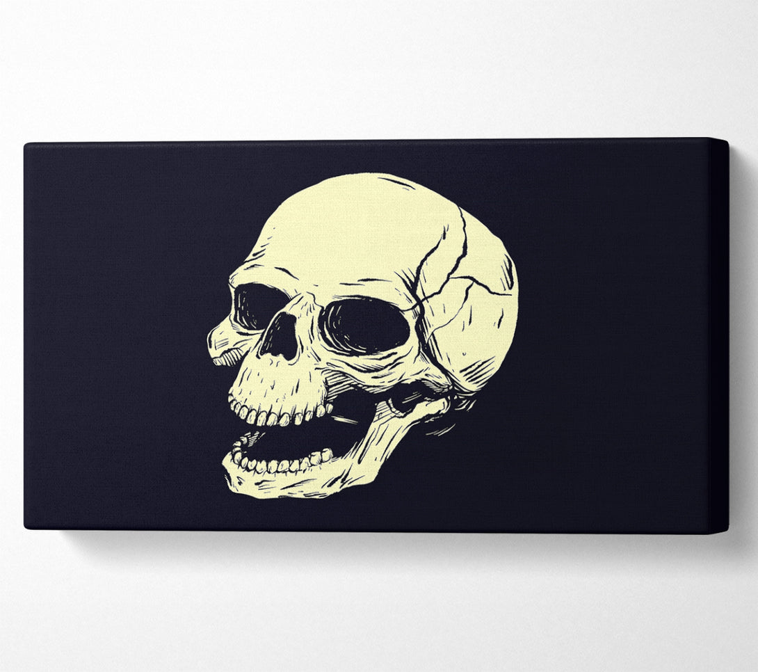 Laughing Skull wide canvas, printed on coated polyester canvas. Mounted on to a 44mm box frame, ready to hang.