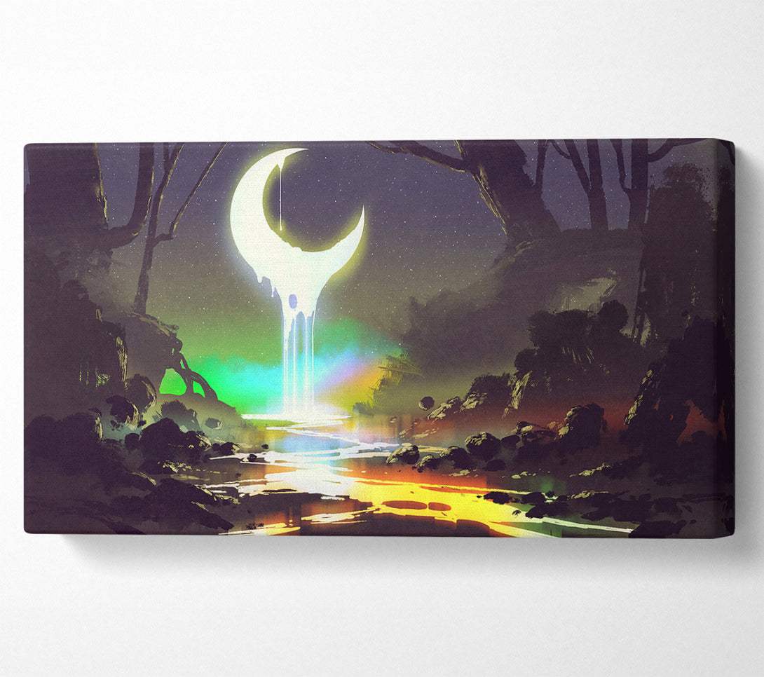 Lava Moon Melting Into The River wide canvas, printed on coated polyester canvas. Mounted on to a 44mm box frame, ready to hang.
