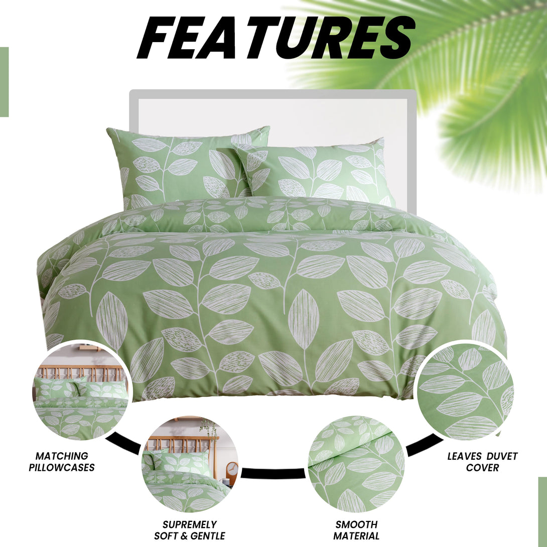 Benefits: The reversible design provides versatility, enabling you to switch up the style of your bedroom without needing to purchase additional sets. The beautiful leaf print is sure to enhance the aesthetic appeal of your space, creating a calming and inviting atmosphere.
