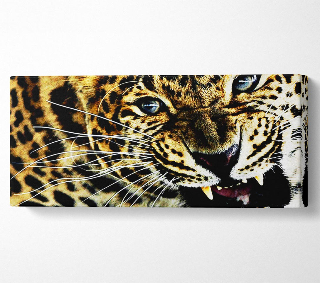 Leopard Roar canvas, printed on coated polyester canvas. Mounted on to a 44mm box frame, ready to hang.