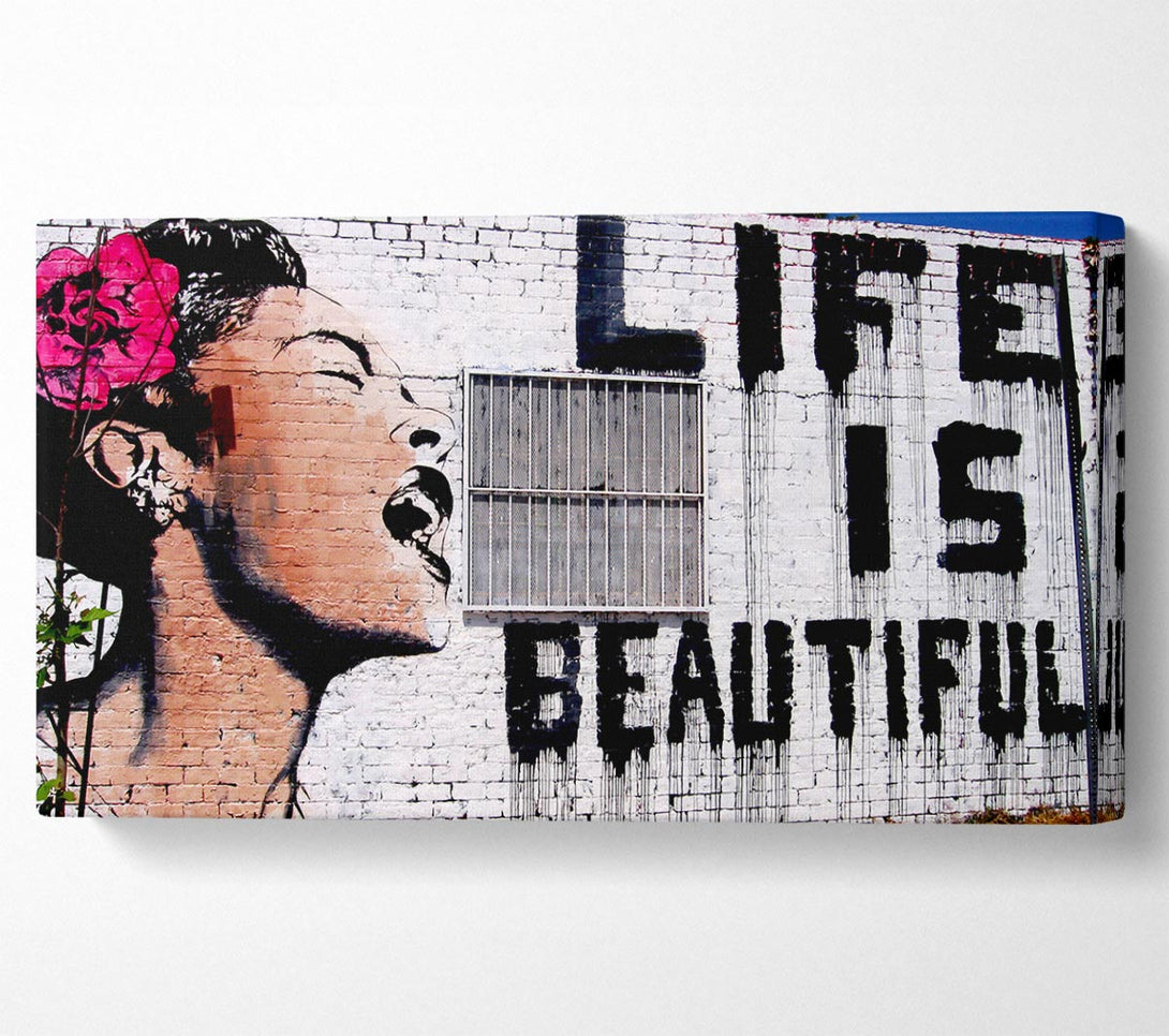 Life Is Beautiful canvas, printed on coated polyester canvas. Mounted on to a 44mm box frame, ready to hang.