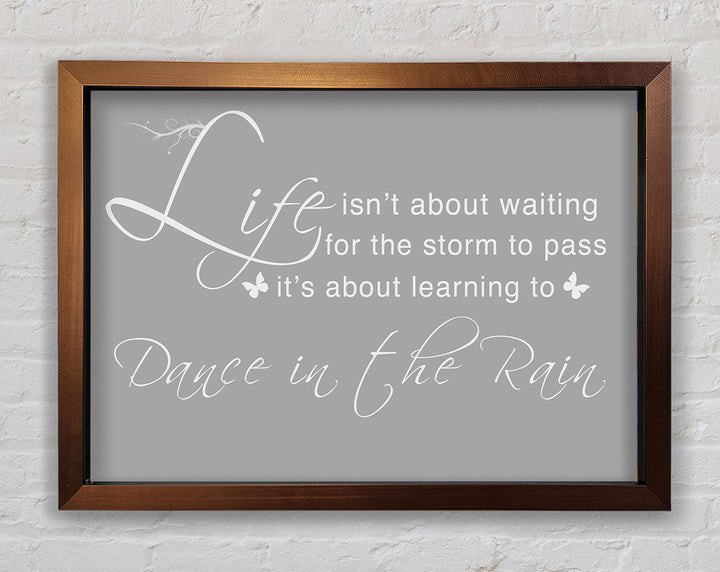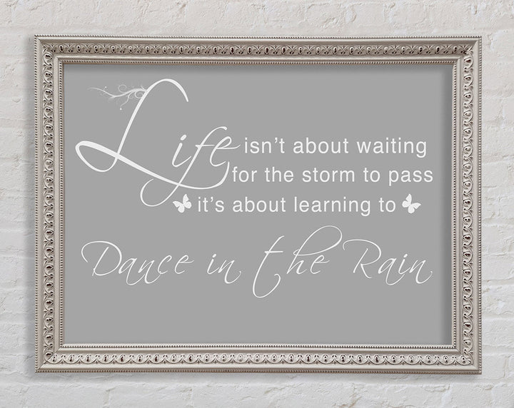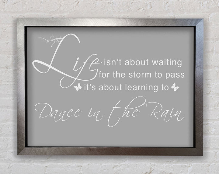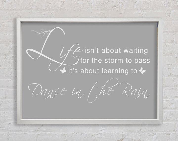Introducing the "Life Isn't About Waiting" Grey White Framed Print, a stunning piece of framed art that adds a touch of inspiration to any space. Handmade in the United Kingdom, this high-quality print features an elegant grey and white design, perfect for modern or classic decor. Available in six sizes, from small to oversized, you can find the perfect fit for any wall. The ready-to-hang feature makes it easy to display your new art piece right away. With a variety of colors to choose from, this framed art is not only beautiful but also versatile, making it a wonderful addition to your home or office.