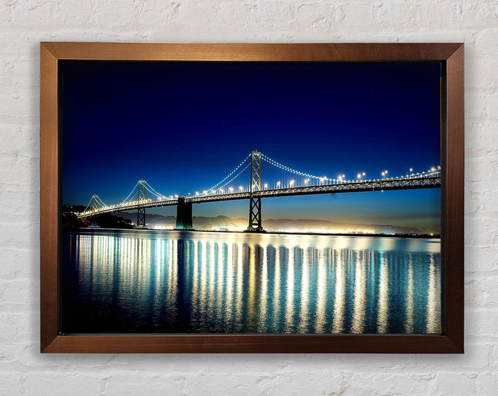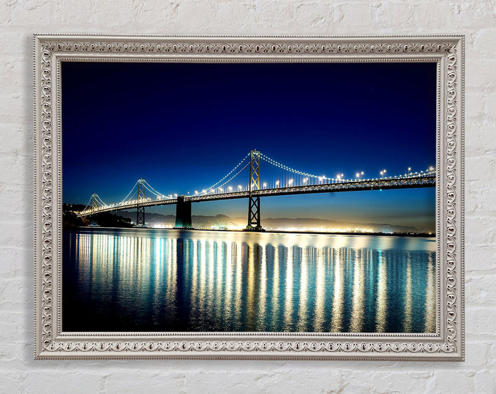 Illuminate your home with the Lights Of The Night Bridge Framed Print. This stunning piece of framed art captures the beauty of a bridge glowing under the night sky. Available in six sizes, from small to oversized, you can find the perfect fit for any space. Choose from a variety of colors to match your decor, and enjoy the convenience of it being ready to hang right out of the box. Each print is handmade in the United Kingdom, ensuring high quality and attention to detail. Add a touch of elegance and charm to your walls with this beautiful and captivating framed art.