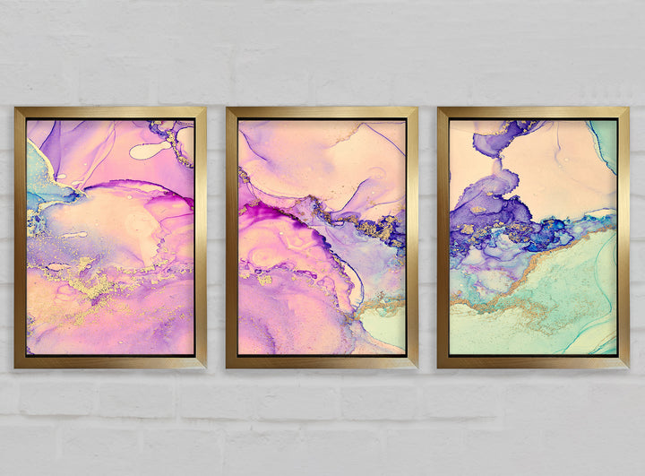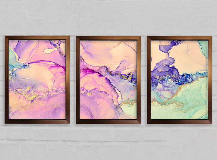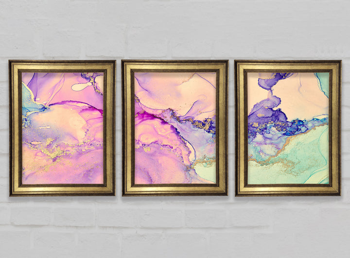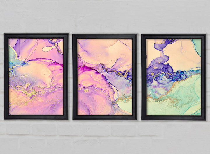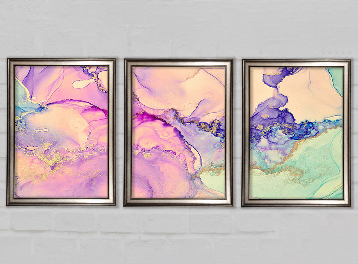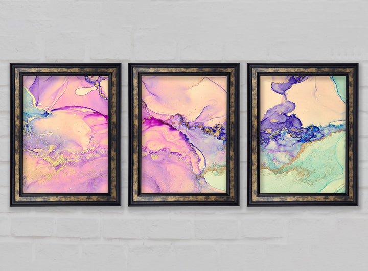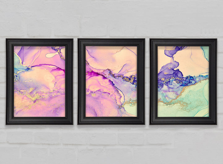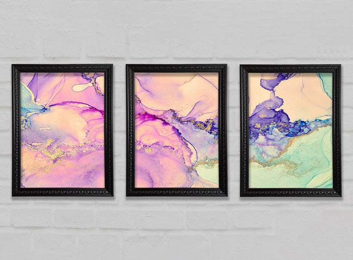 Lilac Pastel Ink Water Set of 3 Framed Print