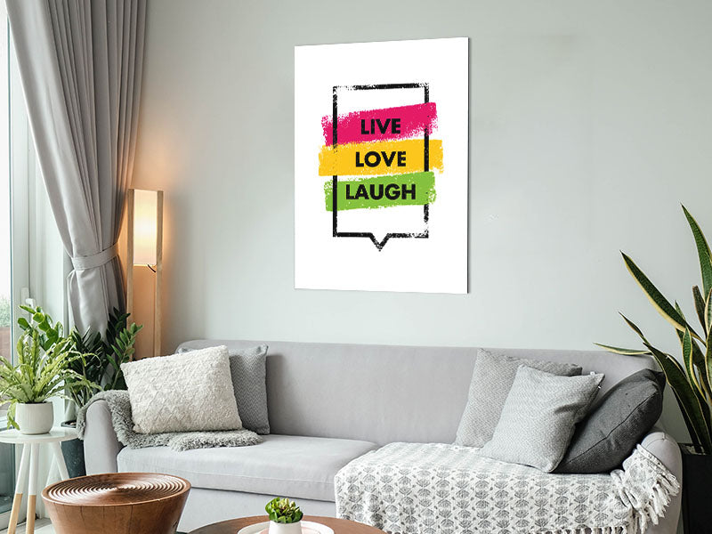 Live Love Laugh 3 Printed on brushed aluminium dibond. A modern way to display art and easy to maintain.