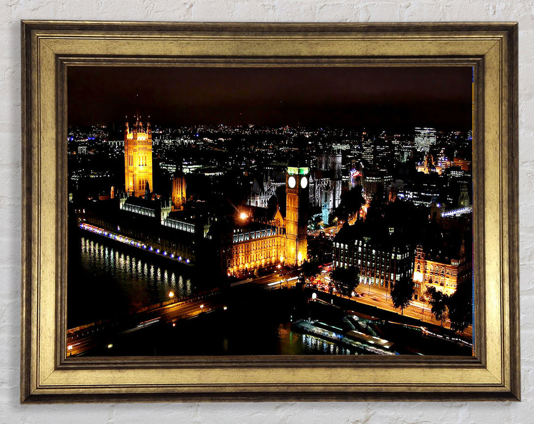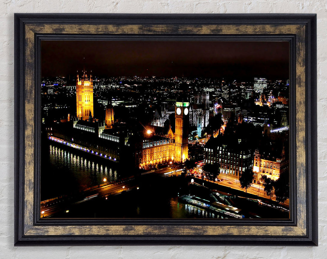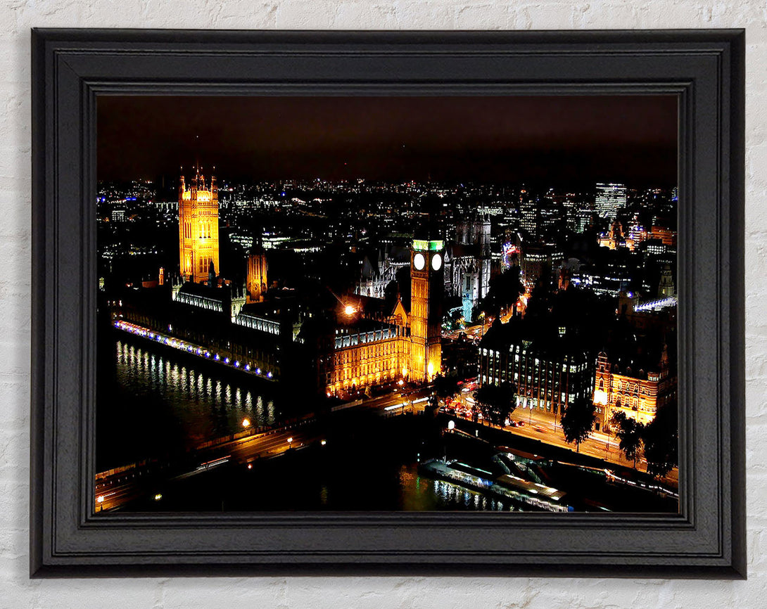 London Ariel View Night Lights Framed Print