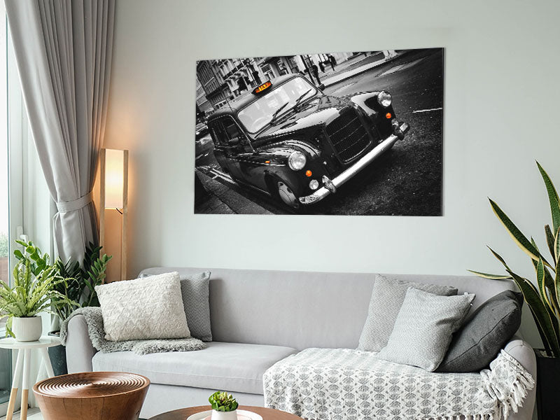 London Black Cab 1 Printed on brushed aluminium dibond. A modern way to display art and easy to maintain.