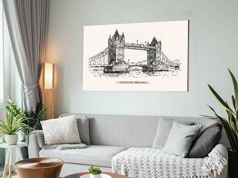 London Bridge Outline Printed on brushed aluminium dibond. A modern way to display art and easy to maintain.