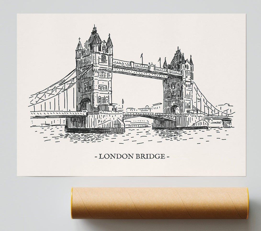 Our London Bridge Outline Poster is printed 260 GSM premium lustre paper that offers vibrant colours and exceptional detail.