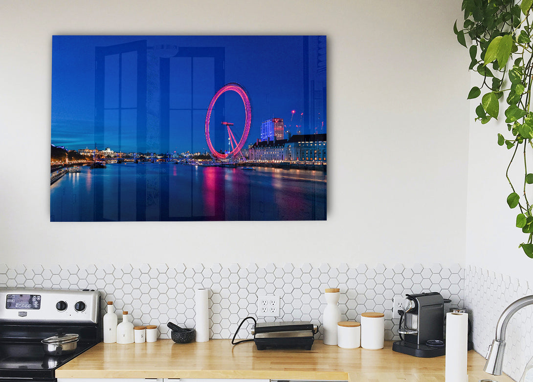 London Eye Pink Glow acrylic print, UV printed onto 5mm thick acrylic glass. Comes with everything you need to hang on your wall.