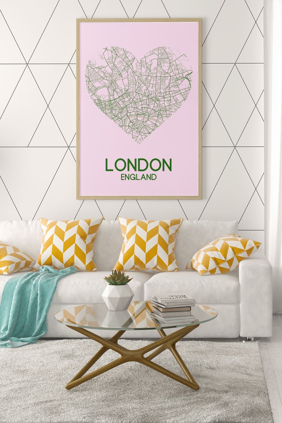 Love Heart Map Any City & Country Personalised Wall Decor Print with 10 New Styles