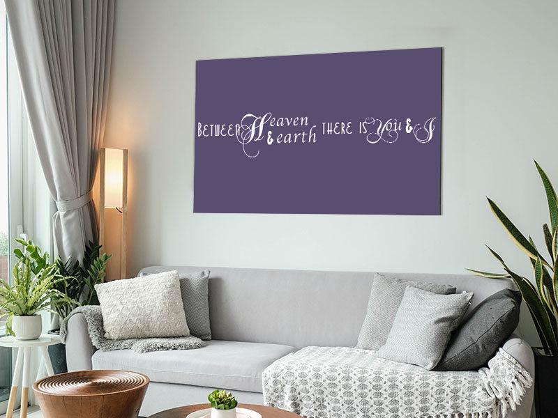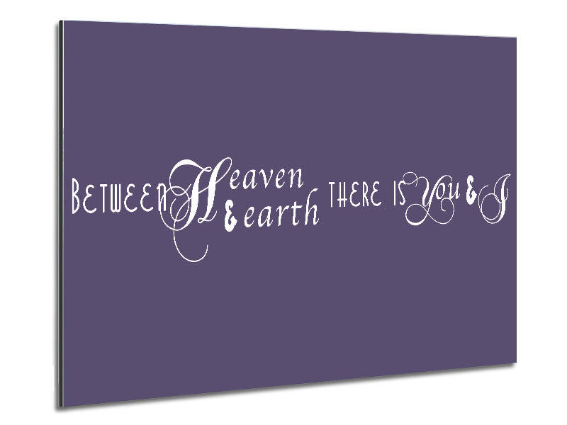 Love Quote Between Heaven And Earth Lilac Printed on brushed aluminium dibond. A modern way to display art and easy to maintain.