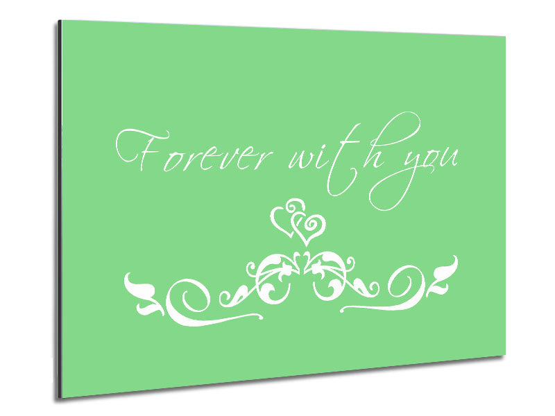 Love Quote Forever With You Green Printed on brushed aluminium dibond. A modern way to display art and easy to maintain.
