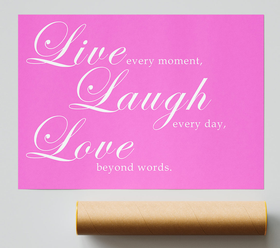 Our Love Quote Live Laugh Love 2 Vivid Pink Poster is printed 260 GSM premium lustre paper that offers vibrant colours and exceptional detail.
