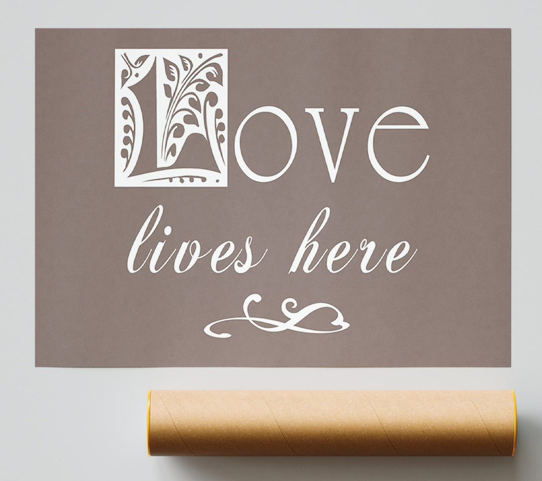 Our Love Quote Love Lives Here Beige Poster is printed 260 GSM premium lustre paper that offers vibrant colours and exceptional detail.