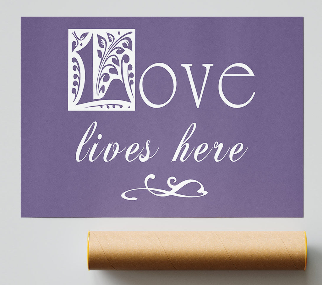 Our Love Quote Love Lives Here Lilac Poster is printed 260 GSM premium lustre paper that offers vibrant colours and exceptional detail.