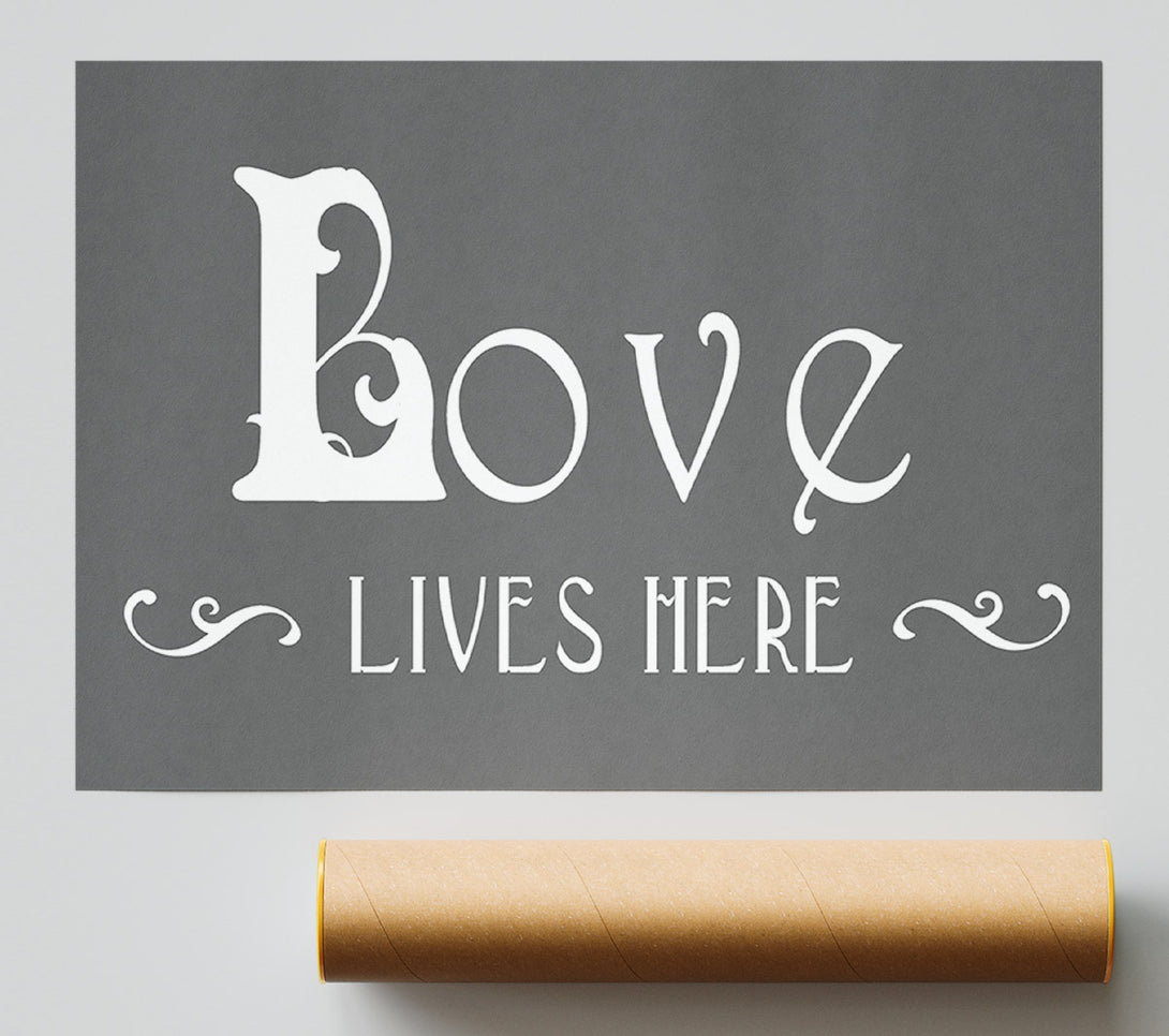 Love Quote Love Lives Here Vines Grey Print