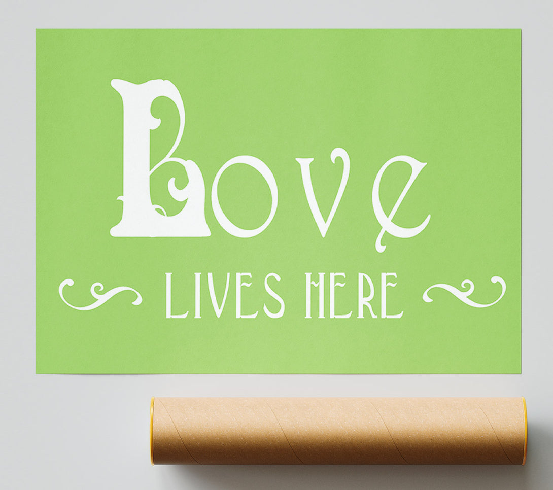 Our Love Quote Love Lives Here Vines Lime Green Poster is printed 260 GSM premium lustre paper that offers vibrant colours and exceptional detail.
