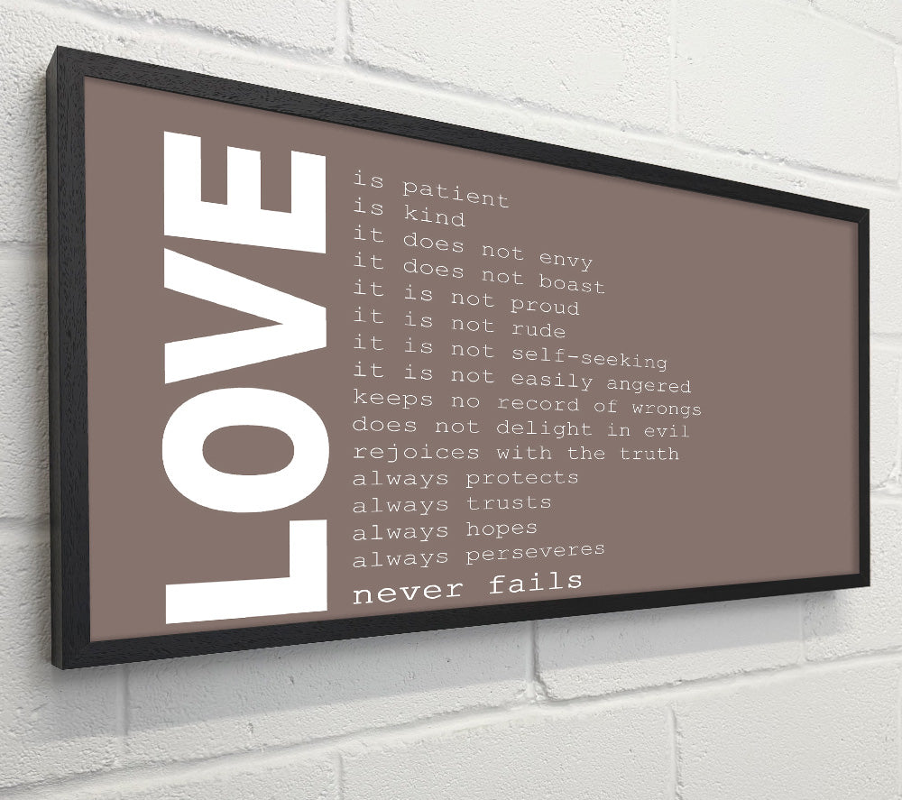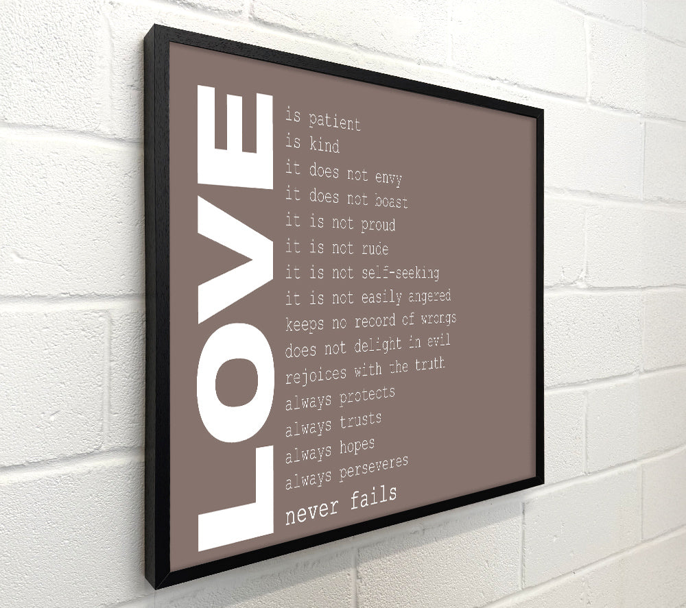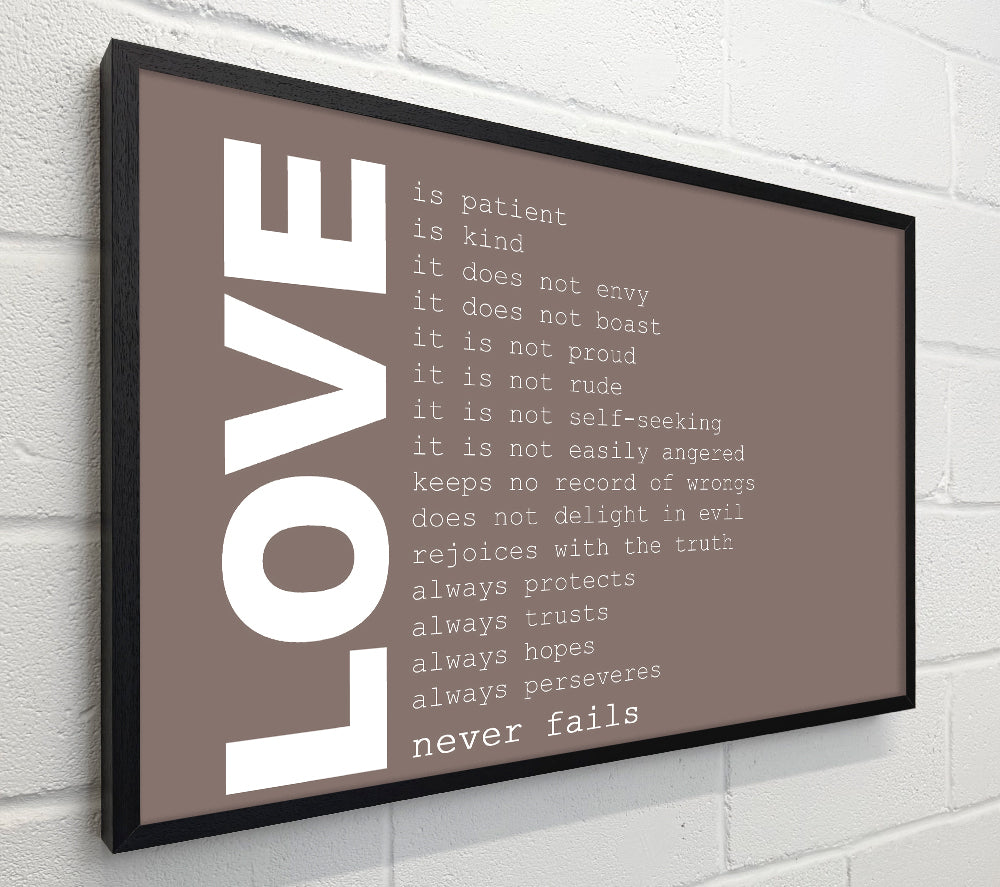 Love Quote Love Never Fails Beige