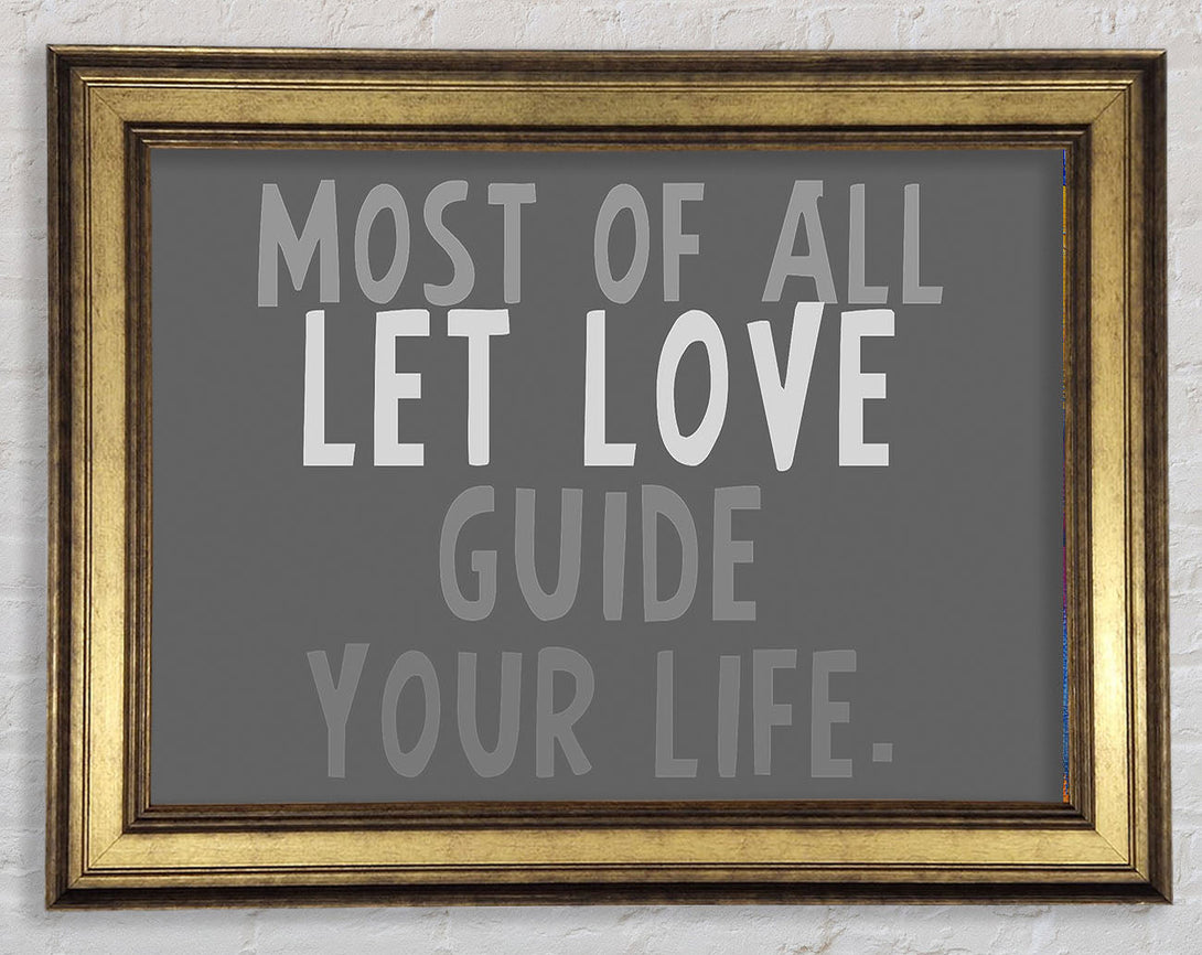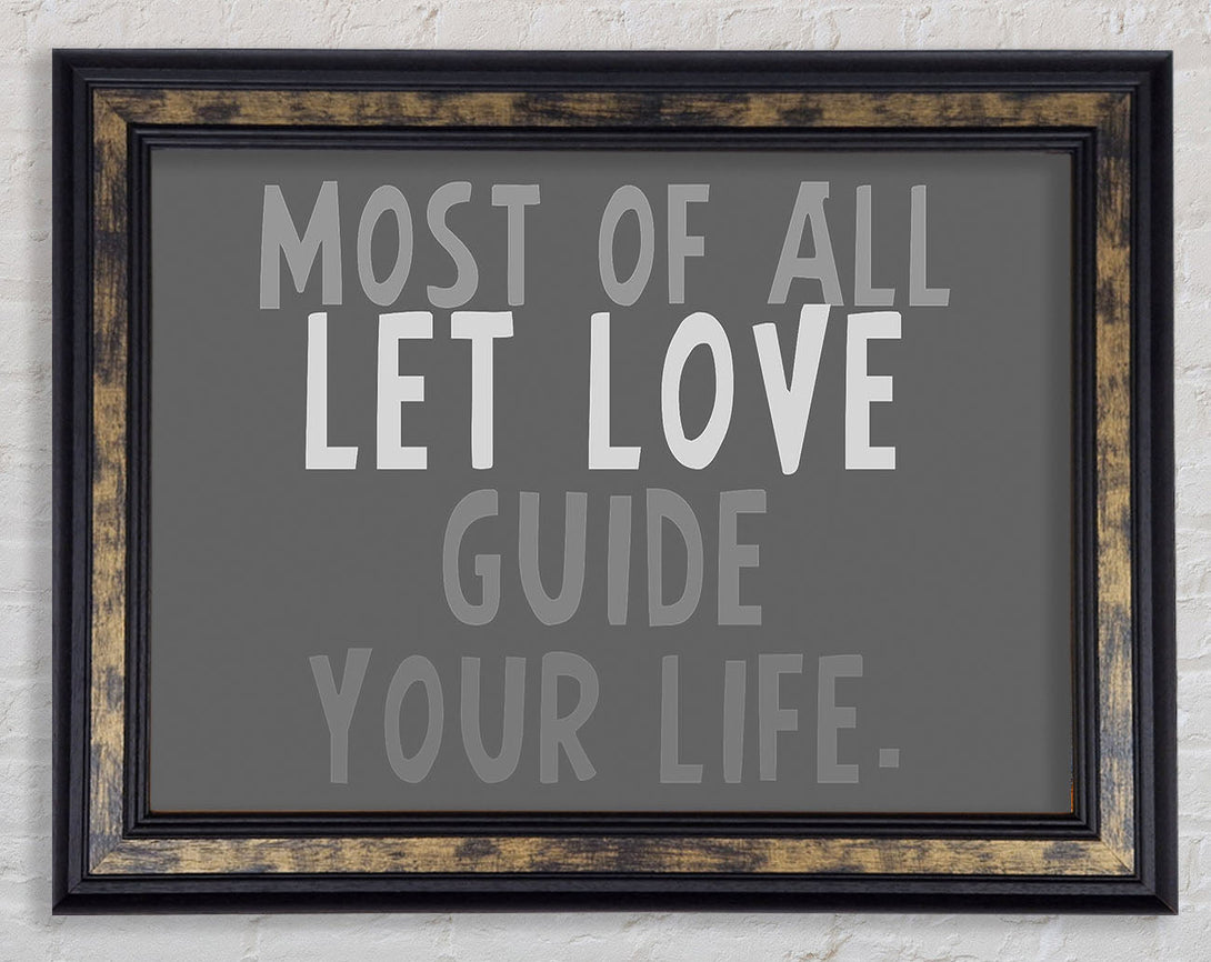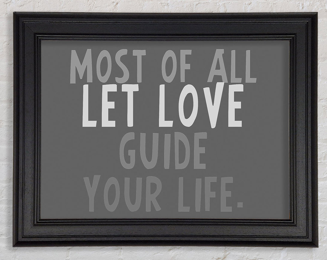 Love Quote Most Of All Let Love Guide Your Life Grey Framed Print
