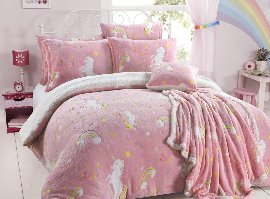 Magical Glow In The Dark Rainbow Unicorn Teddy Fleece Duvet Set for Kids Super Soft Cosy Bedding Perfect for Children's Bedrooms by OLIVIA ROCCO