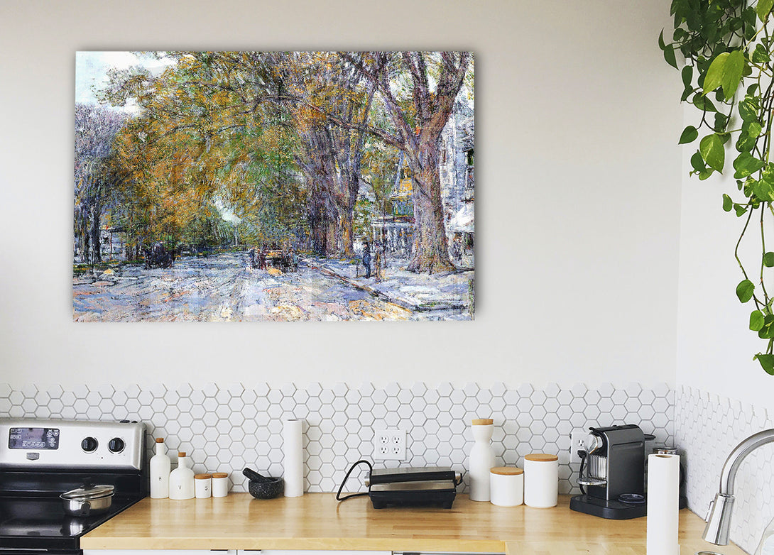 Main Street, East Hampton By Hassam acrylic print, UV printed onto 5mm thick acrylic glass. Comes with everything you need to hang on your wall.
