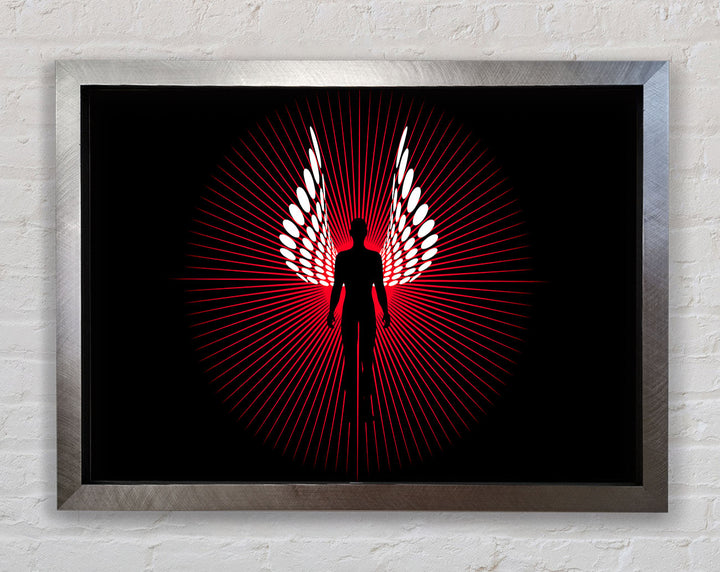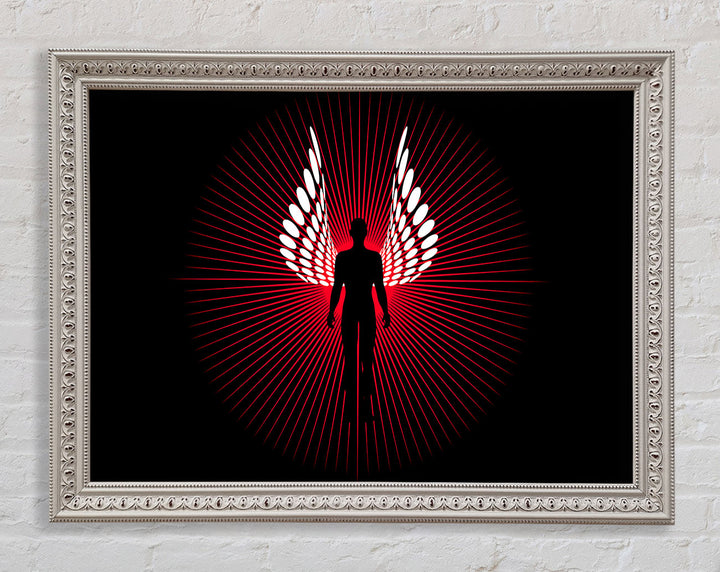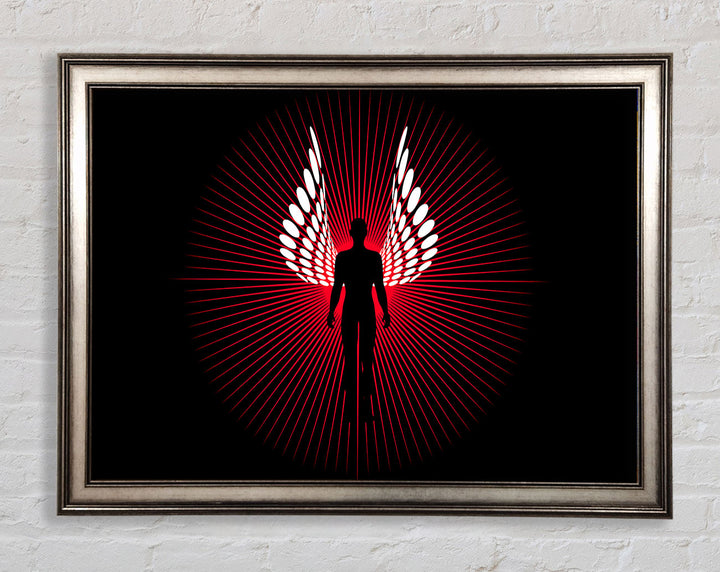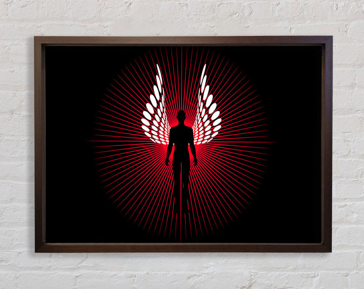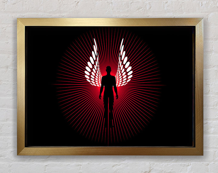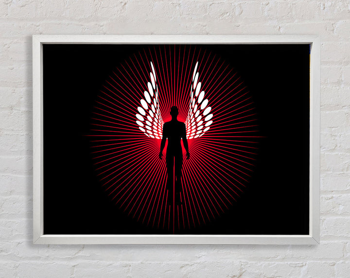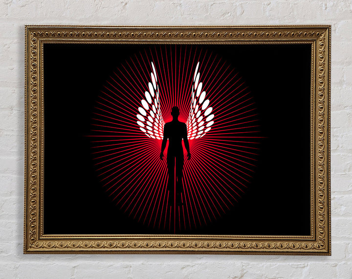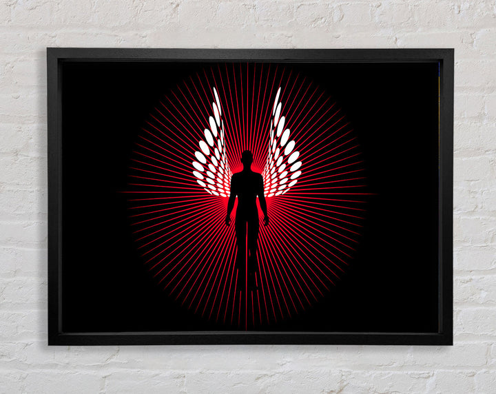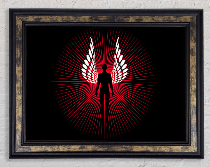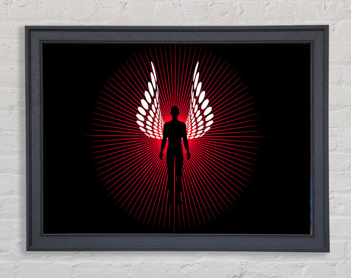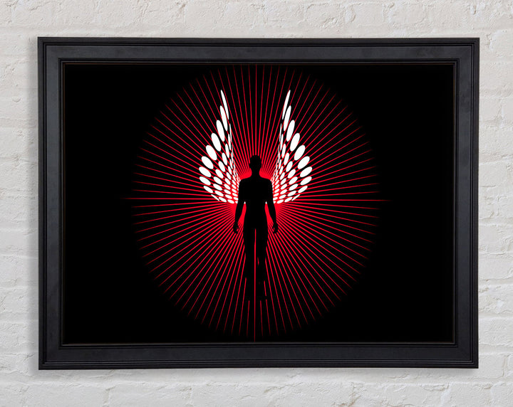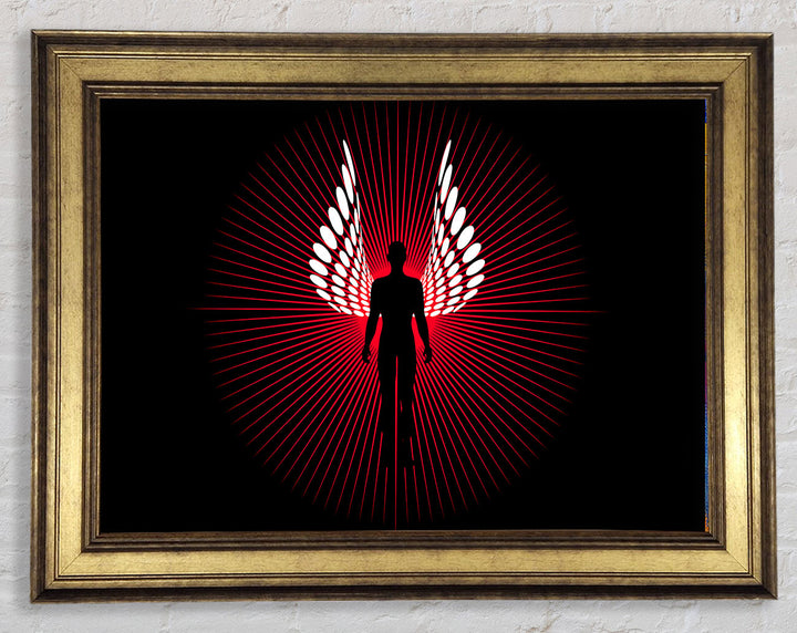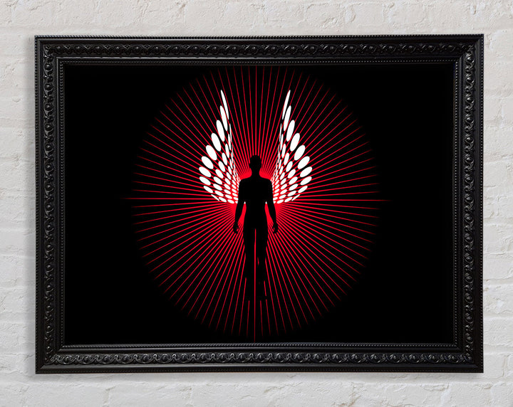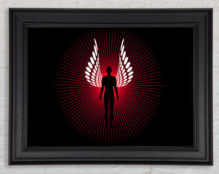 Handmade in the United Kingdom, each piece is crafted with meticulous attention to detail. The framed art arrives ready to hang, making it a hassle-free addition to your home or office. Whether you're looking to enhance your living room, bedroom, or workspace, this Male Angel Wings Red Framed Print is a captivating choice that combines artistry and quality.