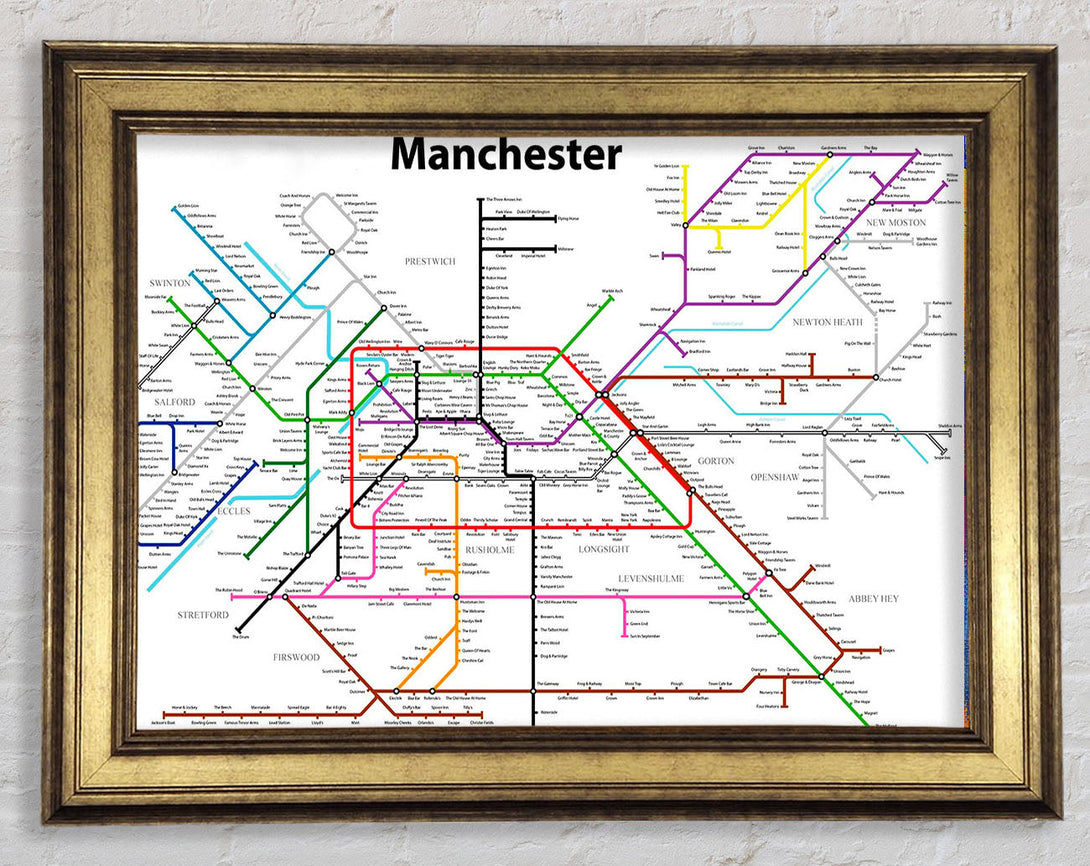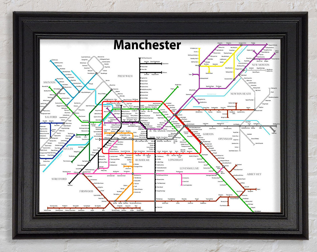 Manchester Pub Tube Map Framed Print