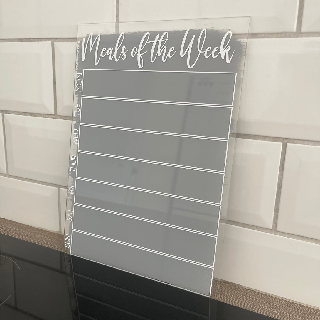 Meals Of The Week Menu Food Meal Planner Painted A4 Clear Acrylic Wipeable Sign With Drywipe Pen