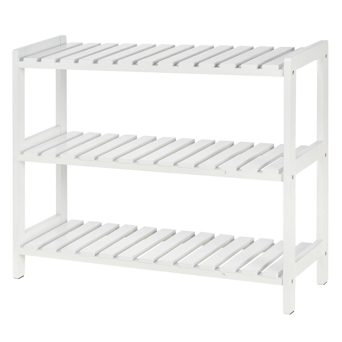 It's time to organise your shoes and boots with this white cabinet from HOMCOM. The simple and modern look will fit any decor of your room. Crafted from solid wood and MDF board, this unit is durable for everyday use, with its open design over three shelves ensuring easy storage, whilst allowing your shoes to aerate for hygiene. Finished with foot caps for balance and floor protection.