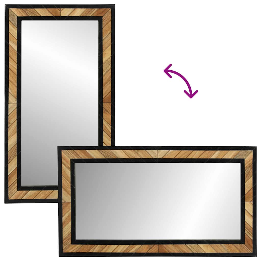 This Rustic Wall Mirror is a real showstopper in any room. It combines rustic charm with modern practicality and adds a welcoming touch to your living spaces. The rectangular shape and solid acacia wood frame give off a warm, natural vibe that's just right for a living room. Perfect for touching up your look or as a decoration, it brings depth and brightness, making smaller rooms feel airier and more illuminated. Material: Made from solid acacia wood, giving the frame a rich, rugged texture. This strong material not only holds up well but also looks authentically stylish over time. The fine grain patterns add visual interest, enhancing the rustic feel. Mirror Type: It's a flat mirror type that provides clear, accurate reflections, which are essential for grooming like shaving or putting on makeup. This simple design is perfect for those who like their mirrors traditional yet classy. Included Components: Comes as one complete mirror, so there's no complicated assembly. It's super easy to set up in any room using regular tools, and it takes a couple of people for perfect positioning. Colour & Style: The mix of black and brown gives it a modern twist, making it suit various interior styles. These colour choices help it either stand out as a focal point or blend in with your existing decor. Care & Maintenance: Keeping the mirror looking good is simple. Just a quick wipe with a damp cloth gets rid of dust and fingerprints, keeping its shine intact. Regular care will make sure it stays a bright feature in your home.