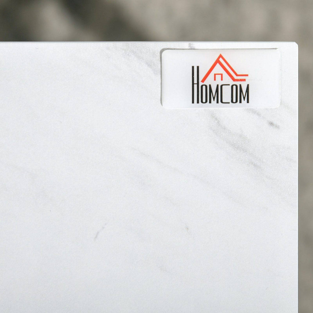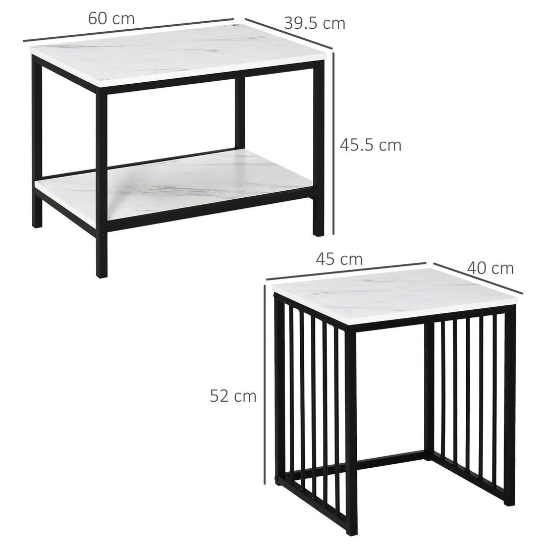 A marble coffee table set from HOMCOM modernises your home. Two tables a tall table, which can be used as a nightstand or end table, whilst the small table is wide and makes a great coffee table; tuck the small table under the other to save space. Its white and black appearance is super stylish, which has an easy-to-clean MDF surface to maintain that pristine look. There's a bottom shelf to keep things organised and tidy, making it a piece that brings elegance and usefulness to your living space.