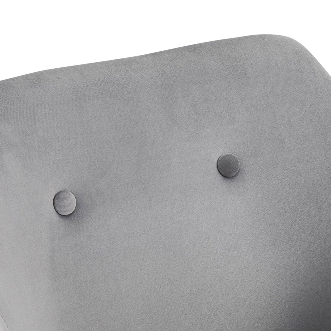 - Velvet-feel upholstery is smooth and soft to the touch