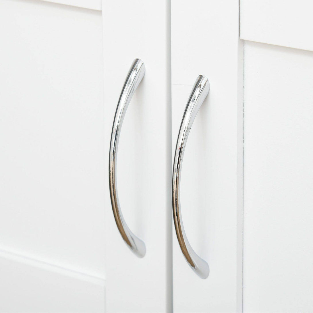 This storage trolley on wheels is an ideal option for any kitchen and dining space - no matter the size. Comes with a drawer, three three-bottle wine shelves and three cabinets provide plenty of room for holding everything together. Wheels allow you to move it where you desire. The rubberwood countertop is hard and ideal for prepping drinks garnishes when friends come over. Simple, white clean design - a modern home addition.