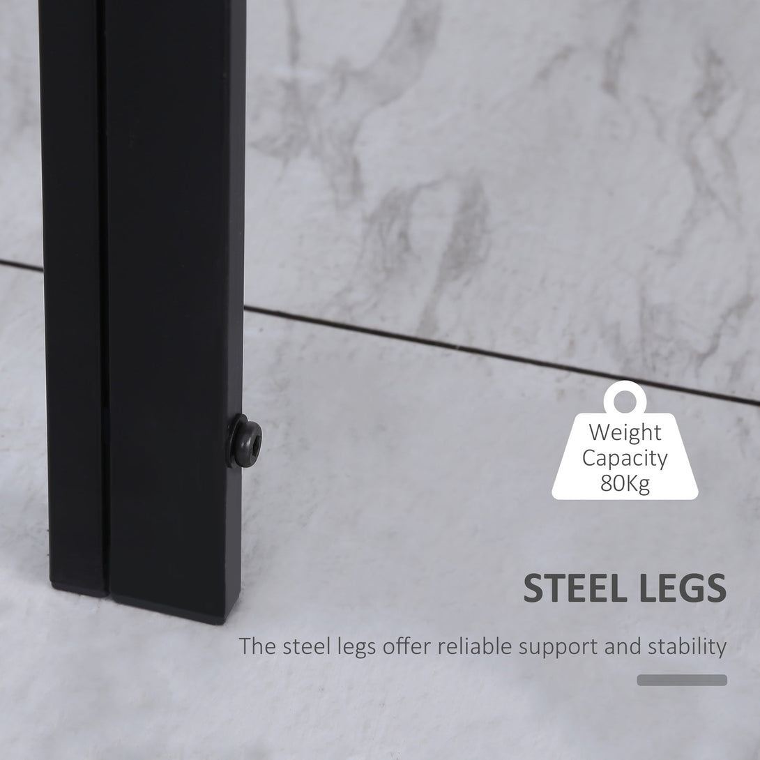 A touch of contemporary for dinner parties, gatherings and everyday meal times, thanks to this dining table for 4 people from HOMCOM. It's fitted with a 6mm tempered glass top for a sleek look, whist ensuring you've got a solid spot to dine and drink from. Large size is great for sharing with the household or friends. Made from steel, the frame is tough and sturdy, with the square-shaped legs helping to keep it stable. Finished with plastic pads to protect floor.