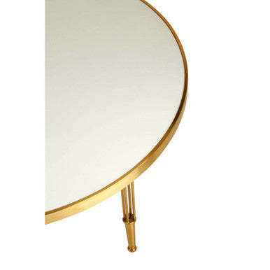 This round dining table is made of sturdy concrete plywood that ensures durability. The brushed gold finish metal legs perfectly complement the tabletop, adding elegance to the dining space.