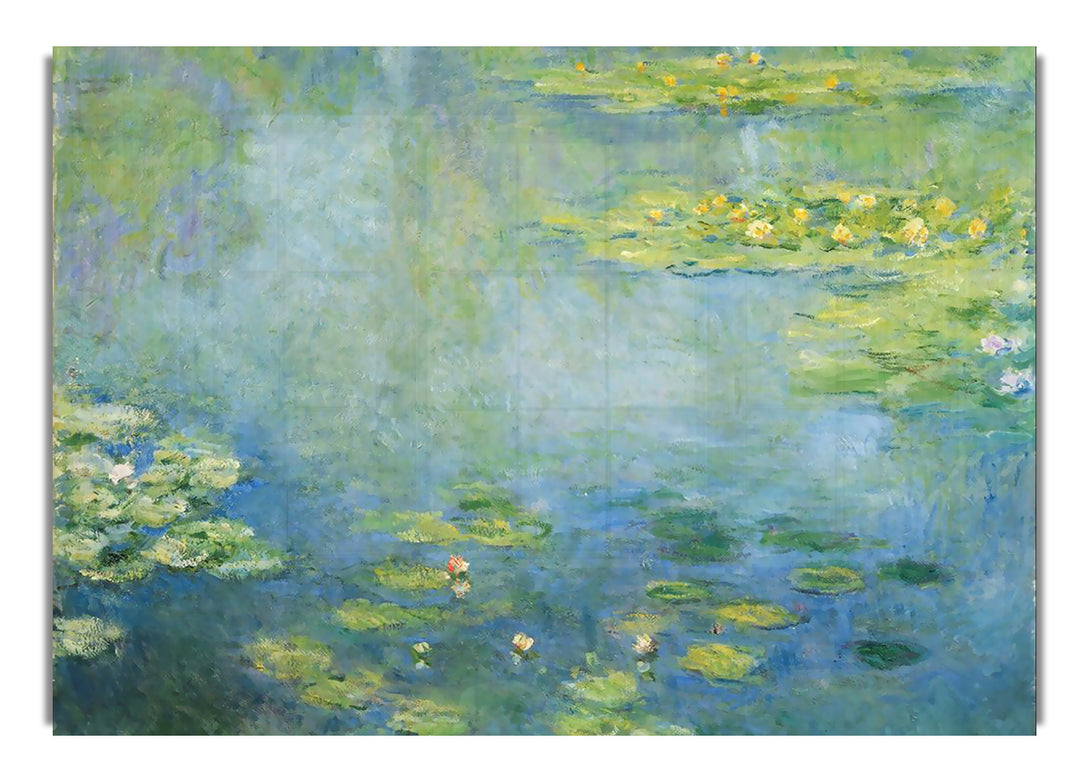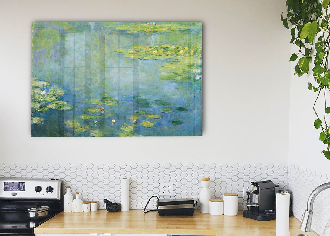 Monet Waterlilies acrylic print, UV printed onto 5mm thick acrylic glass. Comes with everything you need to hang on your wall.