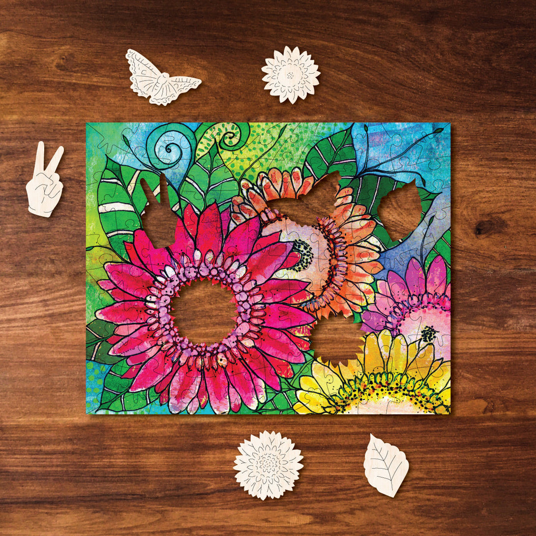 Our MINI QT puzzles are laser cut from thick, 4mm plywood and include 5 whimsies - they make a great puzzle snack!