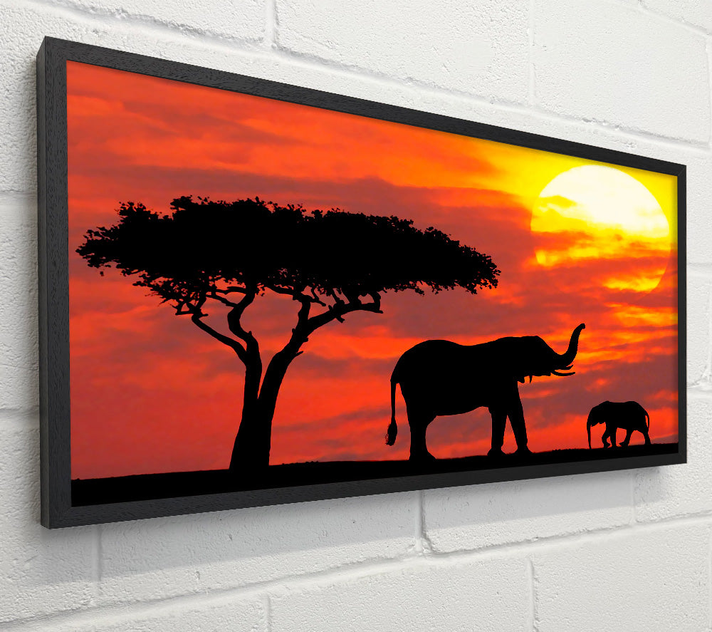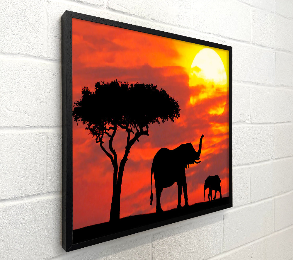 Mother And Baby Elephant Silhouetted At Sunrise Kenya