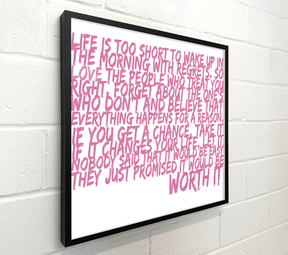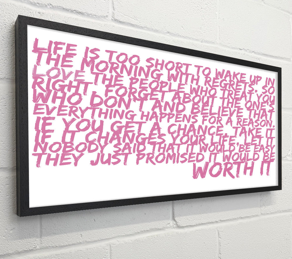 Motivational Quote Life Is Too Short Your Worth It Pink