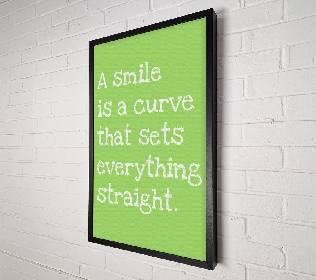 Motivational Quote Smile Is A Curve Lime Green Canvas Wall Art
