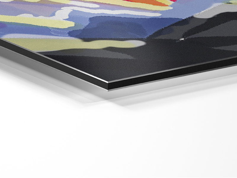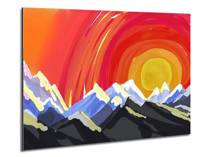 Mountain Peak Sun Printed on brushed aluminium dibond. A modern way to display art and easy to maintain.