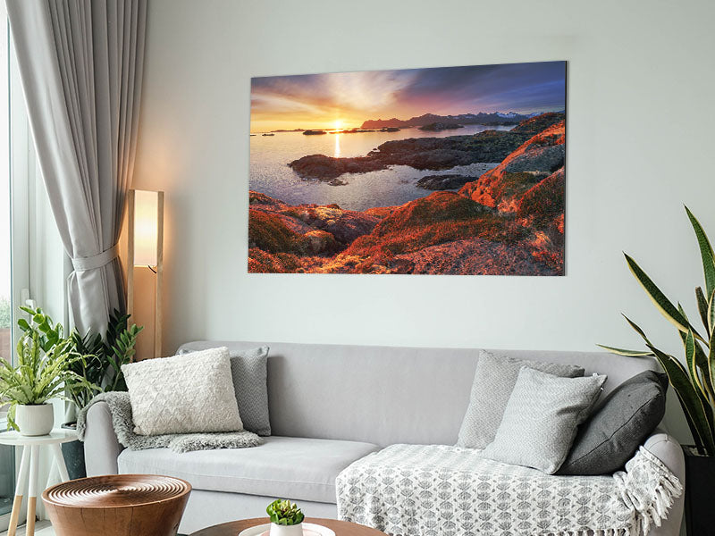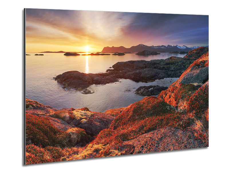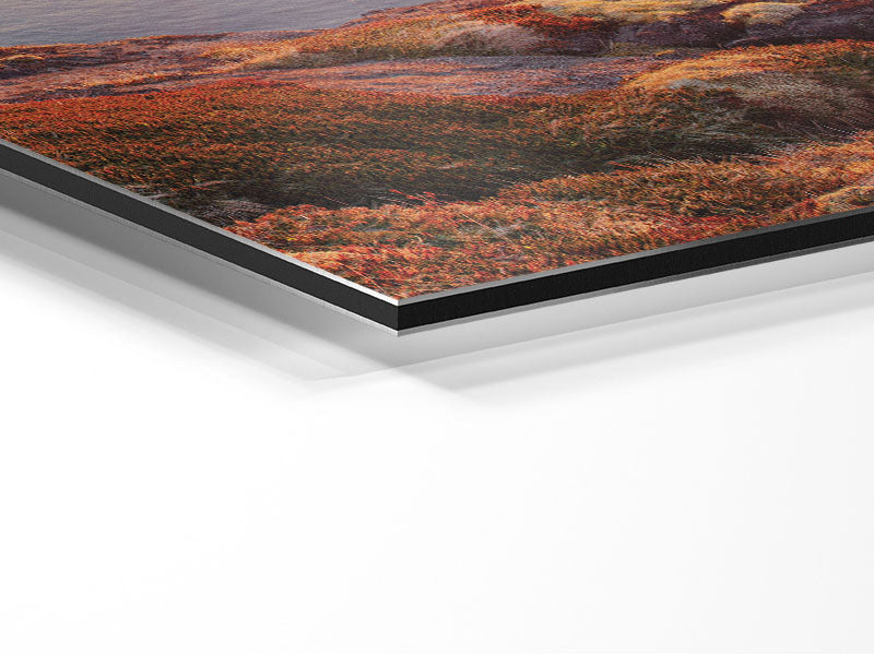 Mountain Sun Sparkle Printed on brushed aluminium dibond. A modern way to display art and easy to maintain.
