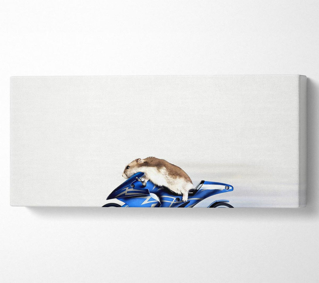 Picture of Mouse Riding Motorcycle Panoramic Canvas Wall Art