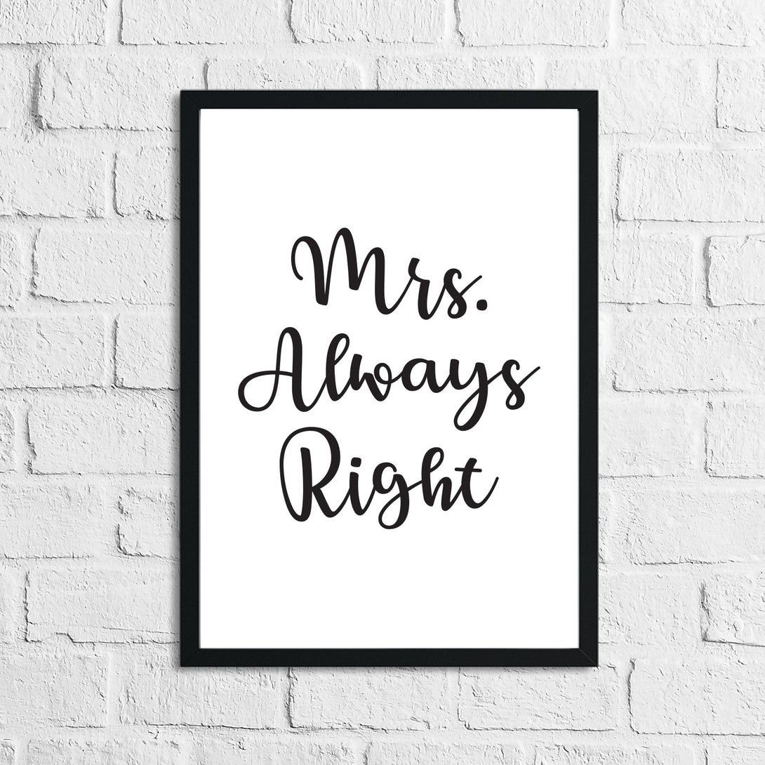 Mr Right Mrs Always Right Bedroom Simple Decor Set Of 2 Prints