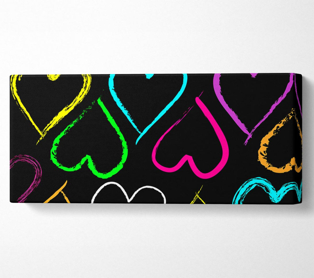 Picture of Multi-Coloured Love Hearts Panoramic Canvas Wall Art
