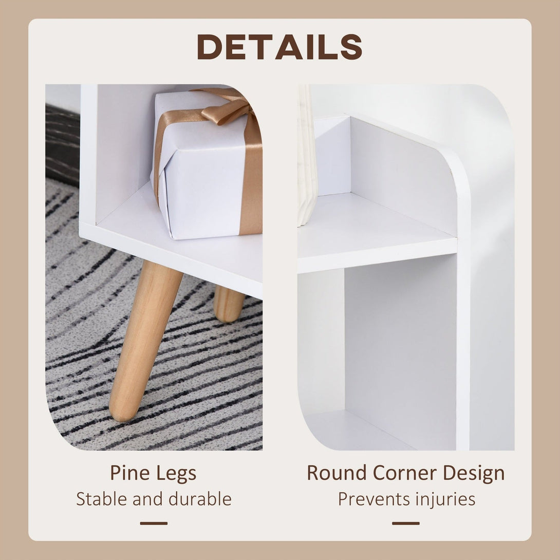 Say hello to beautiful and simple storage with this bookcase from HOMCOM. Made from particle board for a solid structure, it's formed with two open shelves, three small open cubes, a double-door cabinet and and a wide surface top - plenty of room for keeping books, plants, photos, candles etc on. Pine wood legs in an outward-angled manner help create balance and sturdiness. A great way to enhance your living space whilst getting everything organised.