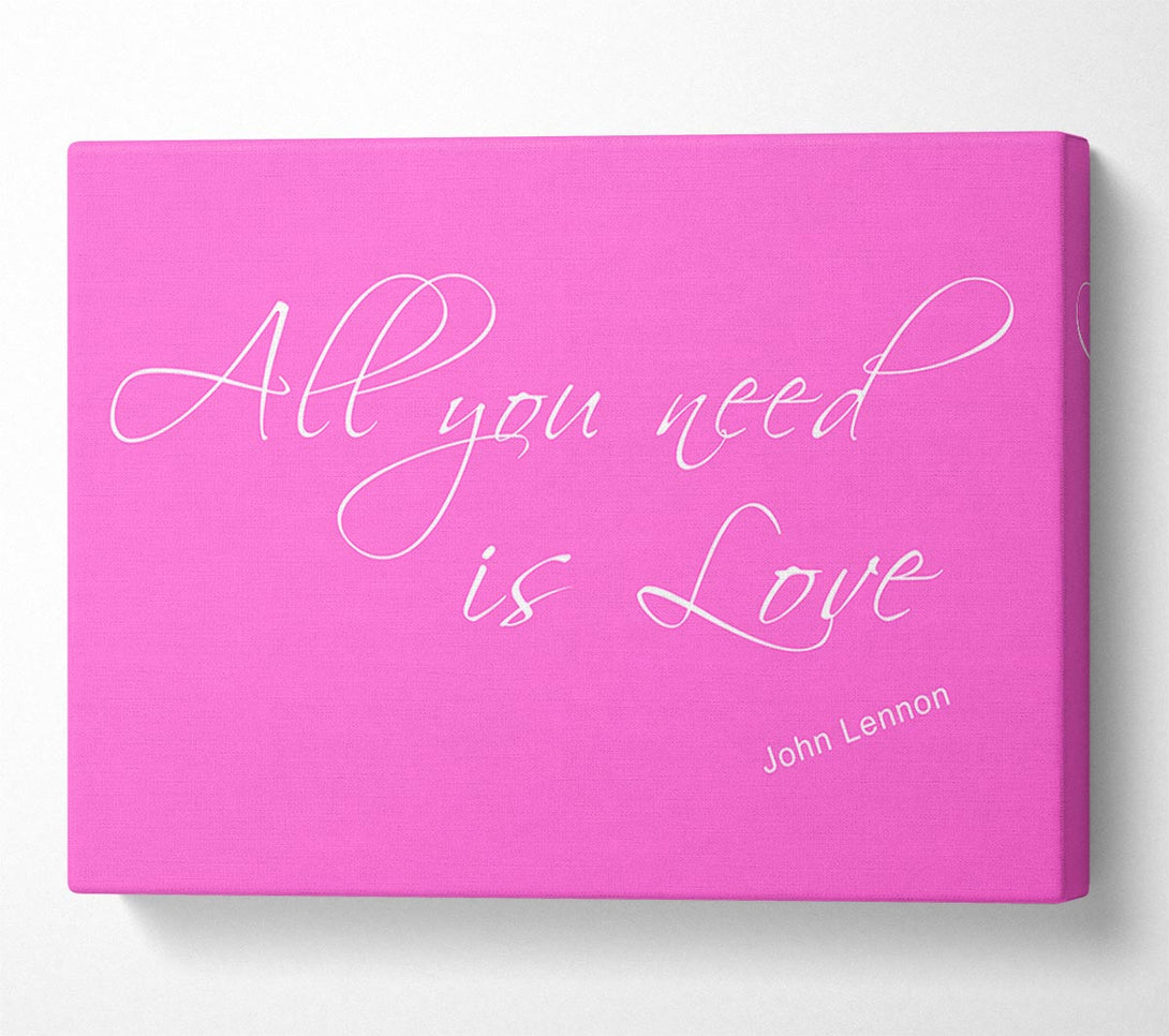 Music Quote All You Need Is Love 2 Vivid Pink Canvas Print