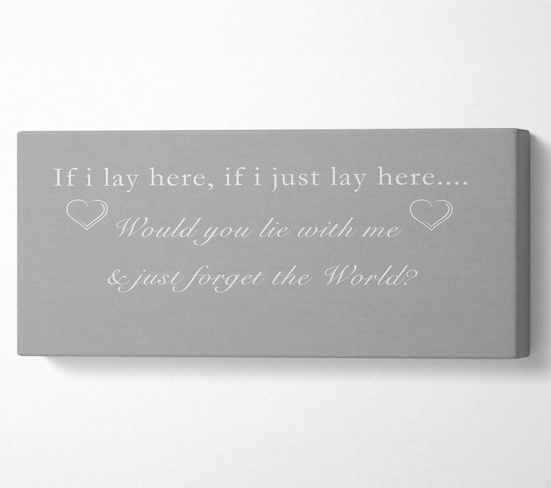 Music Quote If I Lay Here Snow Patrol Grey White canvas, printed on coated polyester canvas. Mounted on to a 44mm box frame, ready to hang.